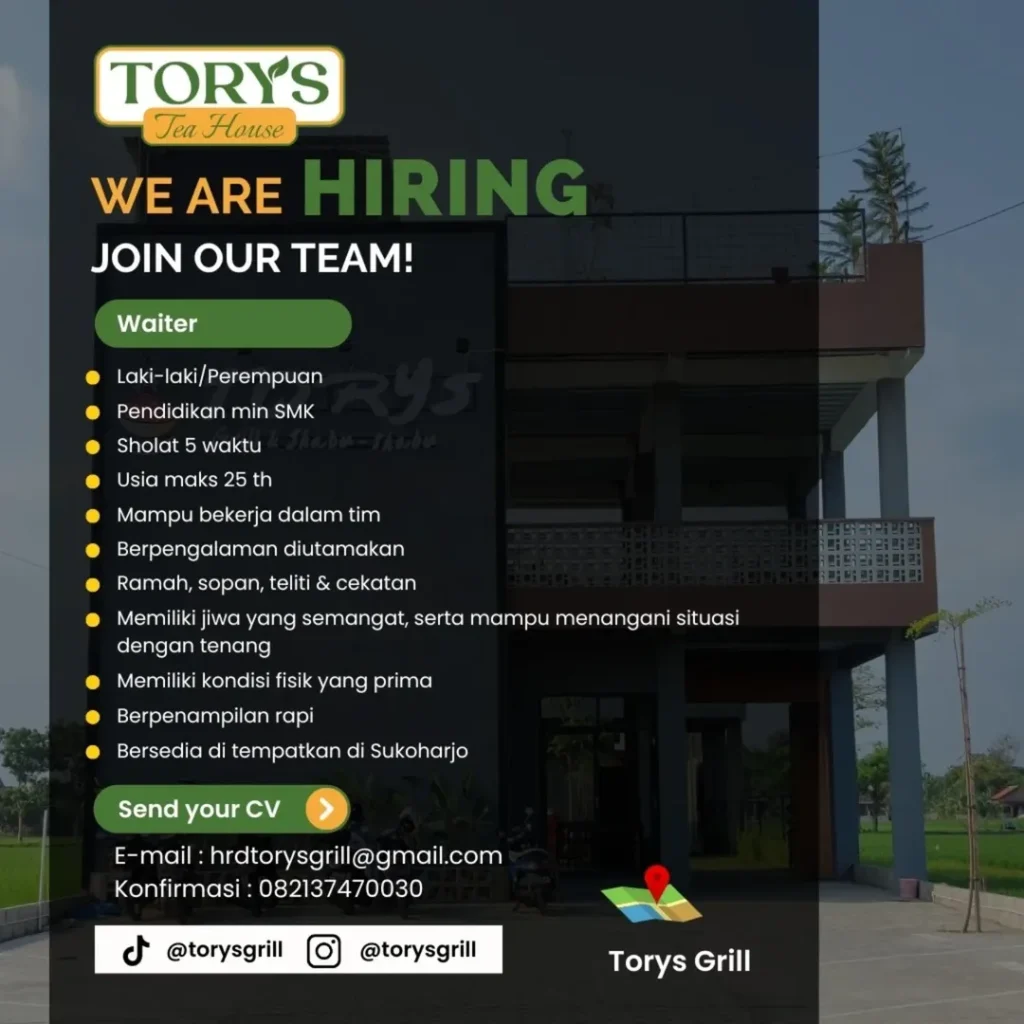 📢📢 TORYS TEA HOUSE OPEN RECRUITMENT 📢📢