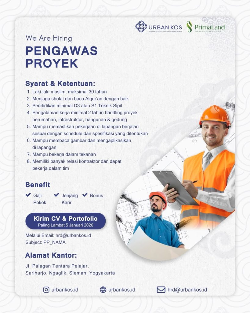Urban Kos by Primaland membuka kesempatan karir bagi Anda talenta muda berbakat di bidang Teknik Sipil untuk bergabung menjadi bagian dari tim kami di Yogyakarta.