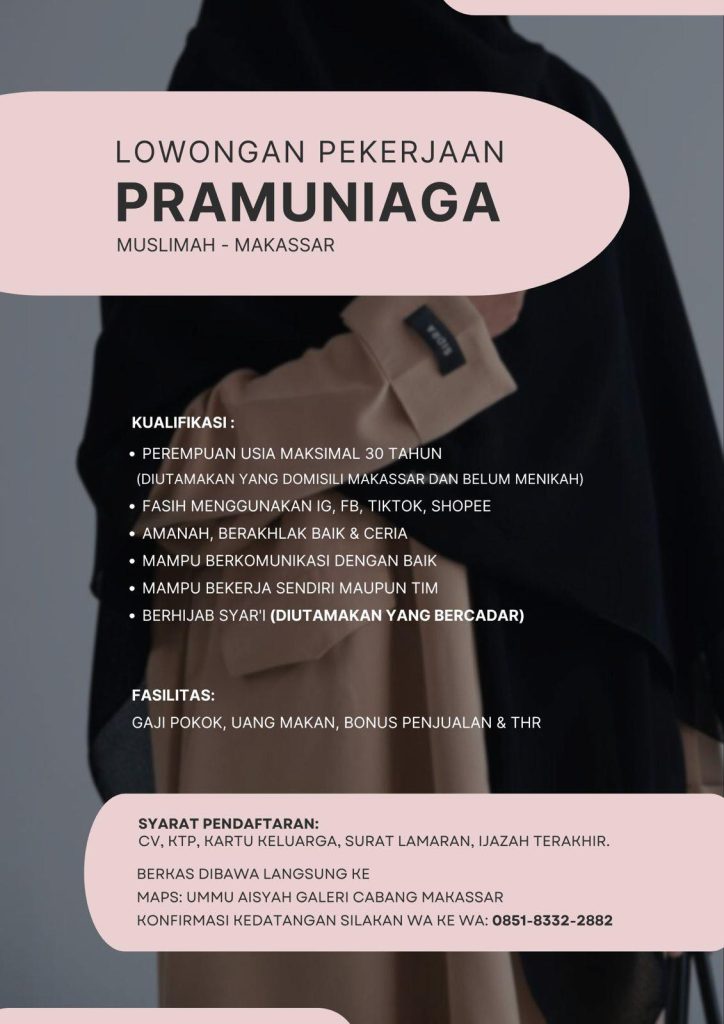 Peluang kerja untuk teman-teman yang menggunakan cadar atau ingin menggunakan cadar.